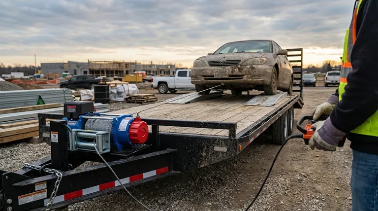- Si está cargando un vehículo averiado, que no funciona o dañado: Un cabrestante es la única solución verdaderamente segura y práctica. Las alternativas son simplemente demasiado arriesgadas y difíciles.