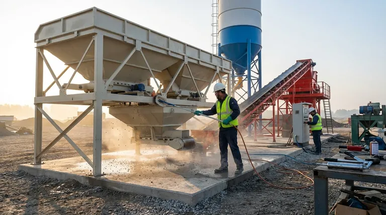 En esencia, el mantenimiento diario de una planta dosificadora de hormigón implica una rutina de inspección, limpieza y verificación. Las tareas principales son inspeccionar visualmente la estructura de la máquina, limpiar los escombros de la malla del tamiz y los componentes de pesaje, y asegurarse de que el sistema de control funcione sin errores.